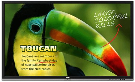 BenQ 的大型觸控顯示器擁有 55″~86″ 多種尺寸選擇,可靈活應用在不同教室環境。此外透過 InstaQShare 無線投影技術,可支援筆電、平板電腦、手機,最高16個設備與觸控顯示器連線。當老師、學校有即時創意、想法時,都可以透過 InstaQShare 無線投影,將圖像直接投影在顯示器上。此外,透過 EZWrite 書寫工具、NFC 觸控筆,學生可以直接在觸控顯示器上書寫,老師也可即時把畫面保存下來,之後分享、或課堂紀錄使用。