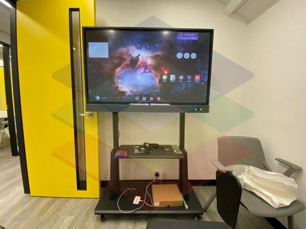 工程簡介:BenQ RM5502K 4K UHD 55" Education Interactive Flat Panel Display x 2 BenQ RM6502K 4K UHD 55" Education Interactive Flat Panel Display x 2 AOV Mobile Stand 移動支架 W65 x 4