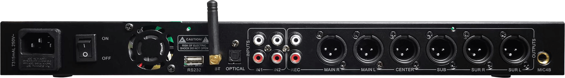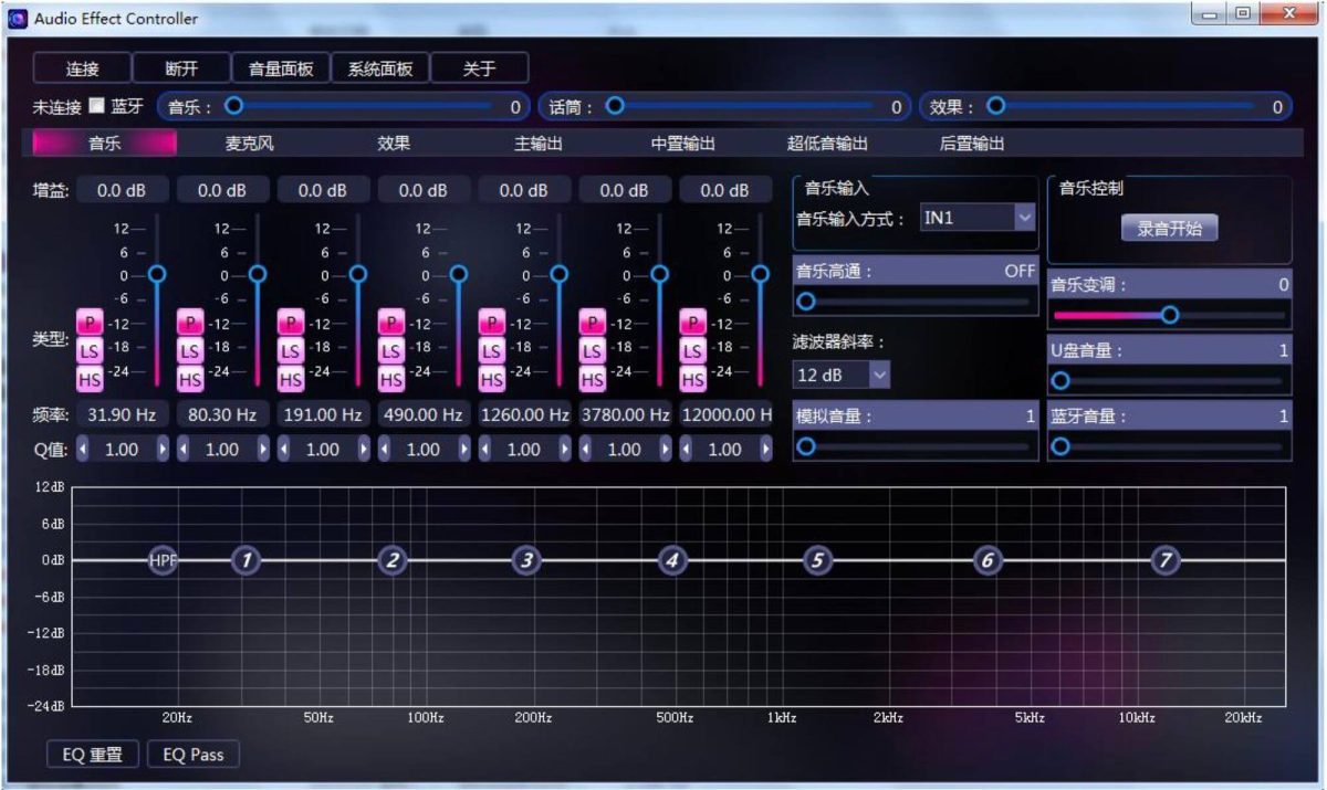 ◆ 具有音箱處理器功能的卡拉OK效果器,各部分功能可獨立調節。◆ 採用24Bit數據總線和32Bit DSP。◆ 音樂設有7段參量均衡。 音樂到主輸出高通濾波器:12dB/24dB(0Hz – 303Hz)◆ 雙路A/B 組話筒輸入,話筒設有15段參量均衡。 有麥克風壓限功能。◆ 主輸出設有5段參量均衡。 有壓縮限幅器。◆ 中置輸出,後置輸出及超低均設有3段參量均衡。◆ 麥克風有4種反饋抑制模式:OFF 1 2 3。◆ 可存儲16種模式。◆ 話筒輸出,主輸出,中置輸出,超低音輸出,後置輸出均設有壓限及延時功能。◆ 內有管理者模式與使用者模式,使用者模式在調整參數后不能存儲。◆ 本機設有全功能功能表表,可通過強大的PC介面設置。◆ 帶光纖,U盤音樂播放功能,支援MP3/WMA/WAV/FLAC/APE多種格式◆雙模藍牙,播放高品質音樂的同時,可通過蘋果/安卓app控制調音通過電腦藍牙連接機器,實現無線調試電腦軟體