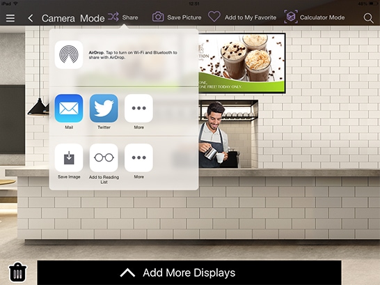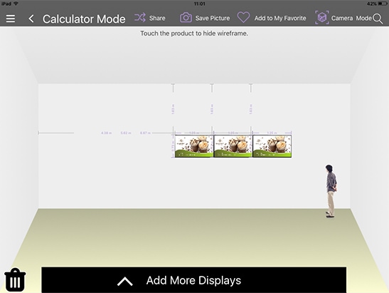 完成設定後,相機模式可讓您拍攝空間的相片,並直接在相片中安排顯示器解決方案的位置。